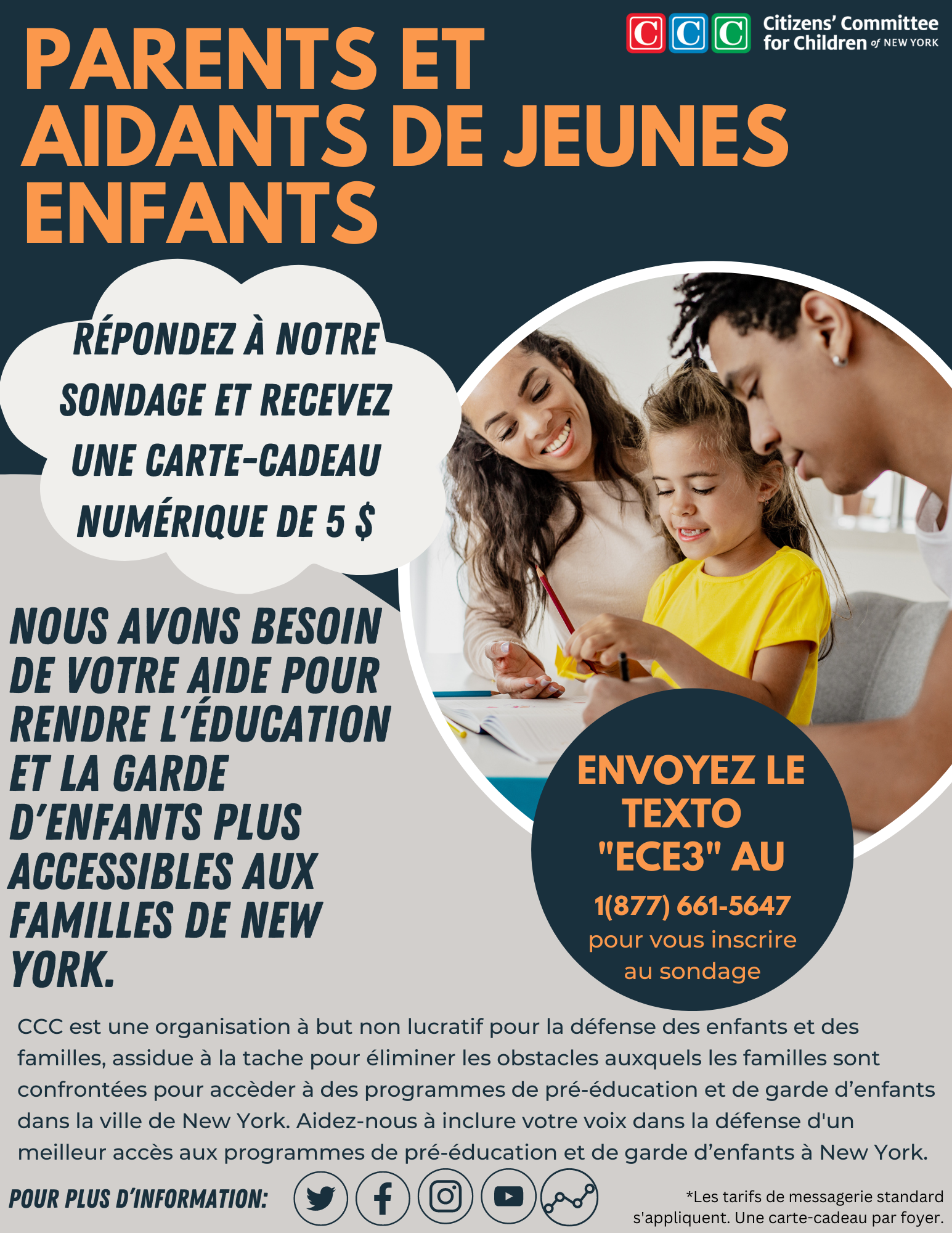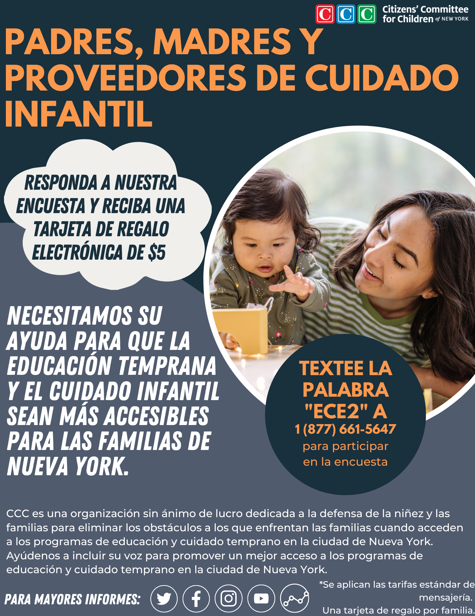Parents and caregivers of young children are invited to take our brief survey. As a thank you, everyone who completes the survey will receive a $5 digital gift card. All answers are confidential and can be shared over text messages. Standard messaging rates may apply. More information is available below.