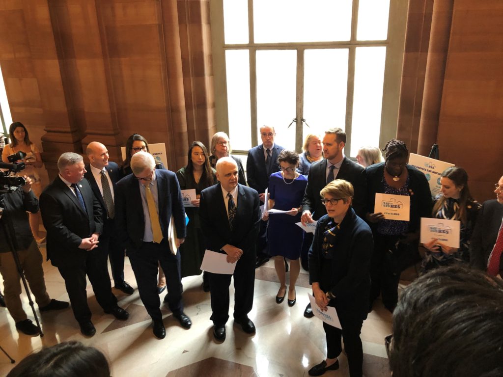 We also rallied with partners for a press conference in the Capitol in support of the Home Stability Support (HSS) bill, one of our top priorities in our state budget advocacy with the Family Homelessness Coalition this session. HSS would provide a statewide rental subsidy which would serve families and individuals who are eligible for public assistance and facing eviction, homelessness or have lost housing due to domestic violence or hazardous conditions.
