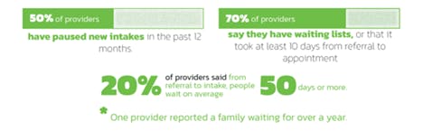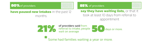 These shortages are, in turn, leading to unacceptably long waitlists for services. As a result of this waitlist crisis, families across the state are experiencing hospitalizations, police involvement, lost education, job loss, family anxiety, and numerous other harms caused by access barriers.