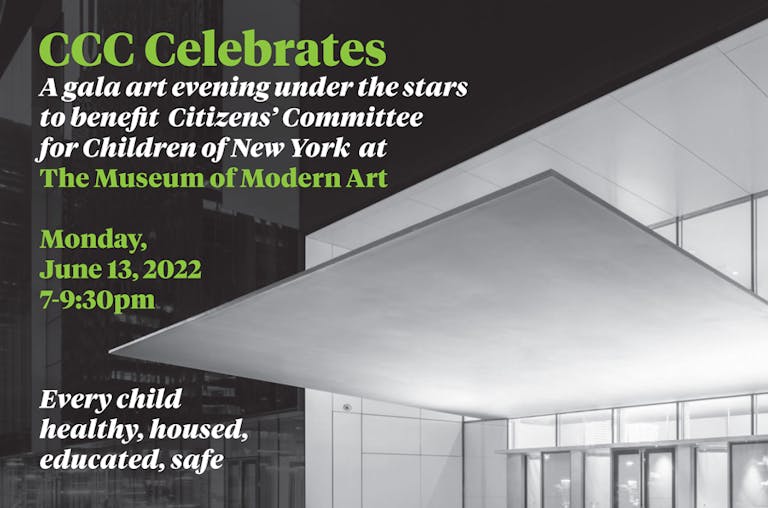 Please join us on June 13, 2022 for CCC Celebrates at The Museum of Modern Art, a gala art evening to benefit our work to ensure every child is healthy, housed, educated and safe.