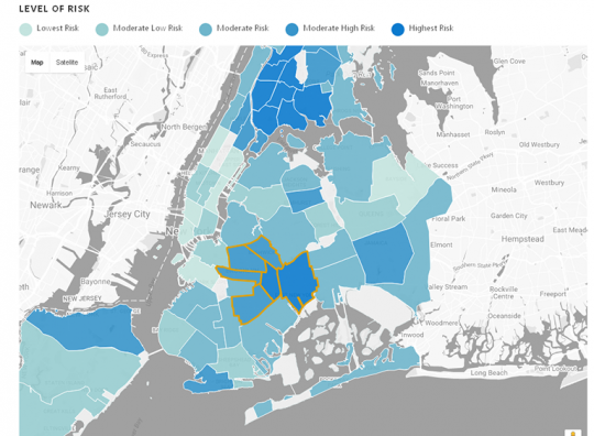 The plan, dubbed Vital Brooklyn, advances a holistic approach to fighting poverty that our research has shown is desperately needed. The Central Brooklyn communities of Brownsville, Bedford Stuyvesant, Crown Heights, and East New York all rank high-risk or moderate-high risk in our Community Risk Ranking across multiple domains – health, education, housing, youth services, economic stability, and family and community services.
