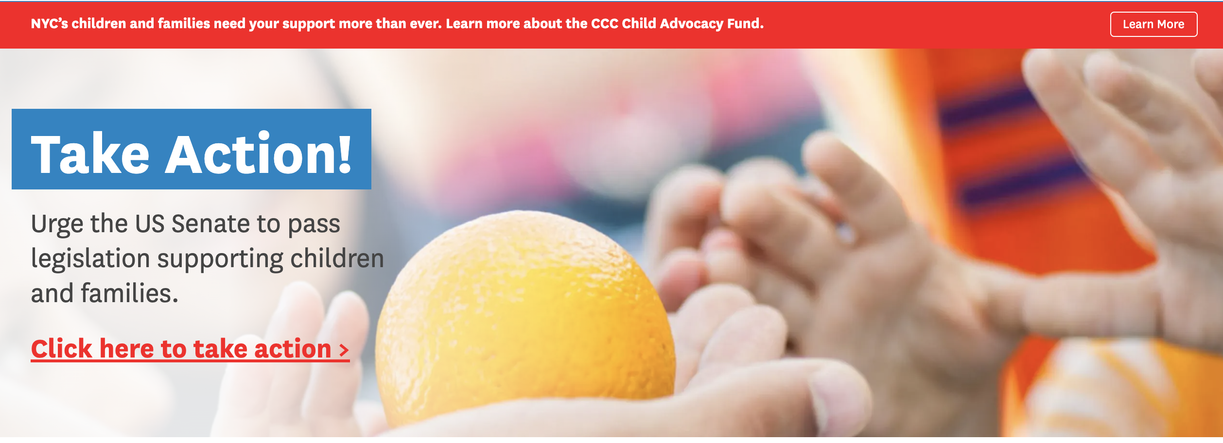 To find opportunities to write to city, state, and federal officials regarding issues impacting New York City children and families, hover over “Take Action” and click on “Advocate With Us.”