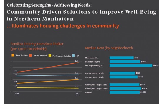 Our new report, “Celebrating Strengths, Addressing Needs: Community Driven Solutions to Improve Well-Being in Northern Manhattan,” took a look at some of the difficulties facing area residents and partnered with community members to learn what changes they hoped to see. The report found that in the midst of the challenges they face, longtime members of northern Manhattan communities expressed a deep desire to see their neighborhoods strengthened and offered critical input and ideas around effective solutions.